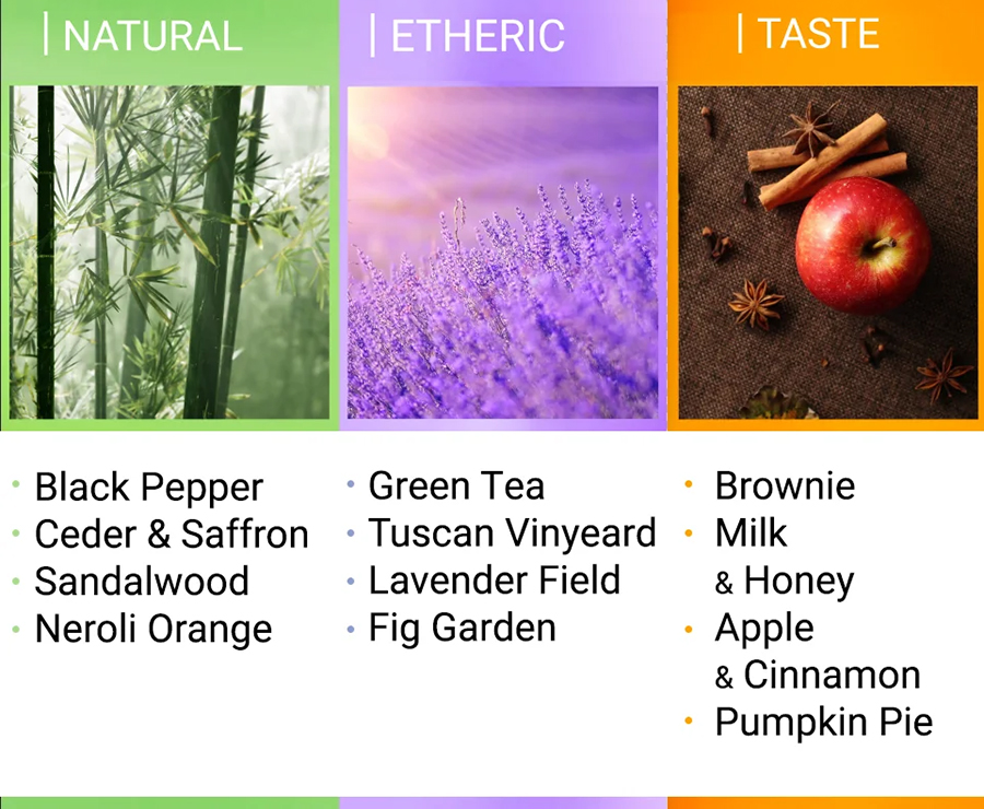 Crea un'atmosfera magica grazie alla personalizzazione della fragranza Grazie ad una tecnologia avanzata e ad oli profumati di alta qualità, hai la garanzia che il tuo cliente godrà di un aroma accattivante per tutta la durata della candela. Inoltre, puoi abbinare perfettamente l'aroma della candela alla filosofia del brand pubblicizzato. |