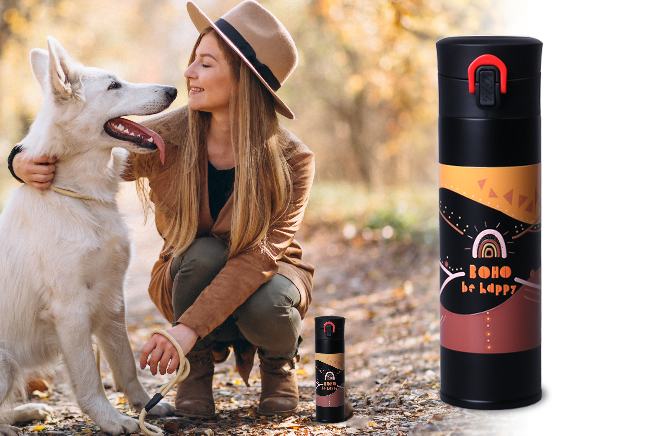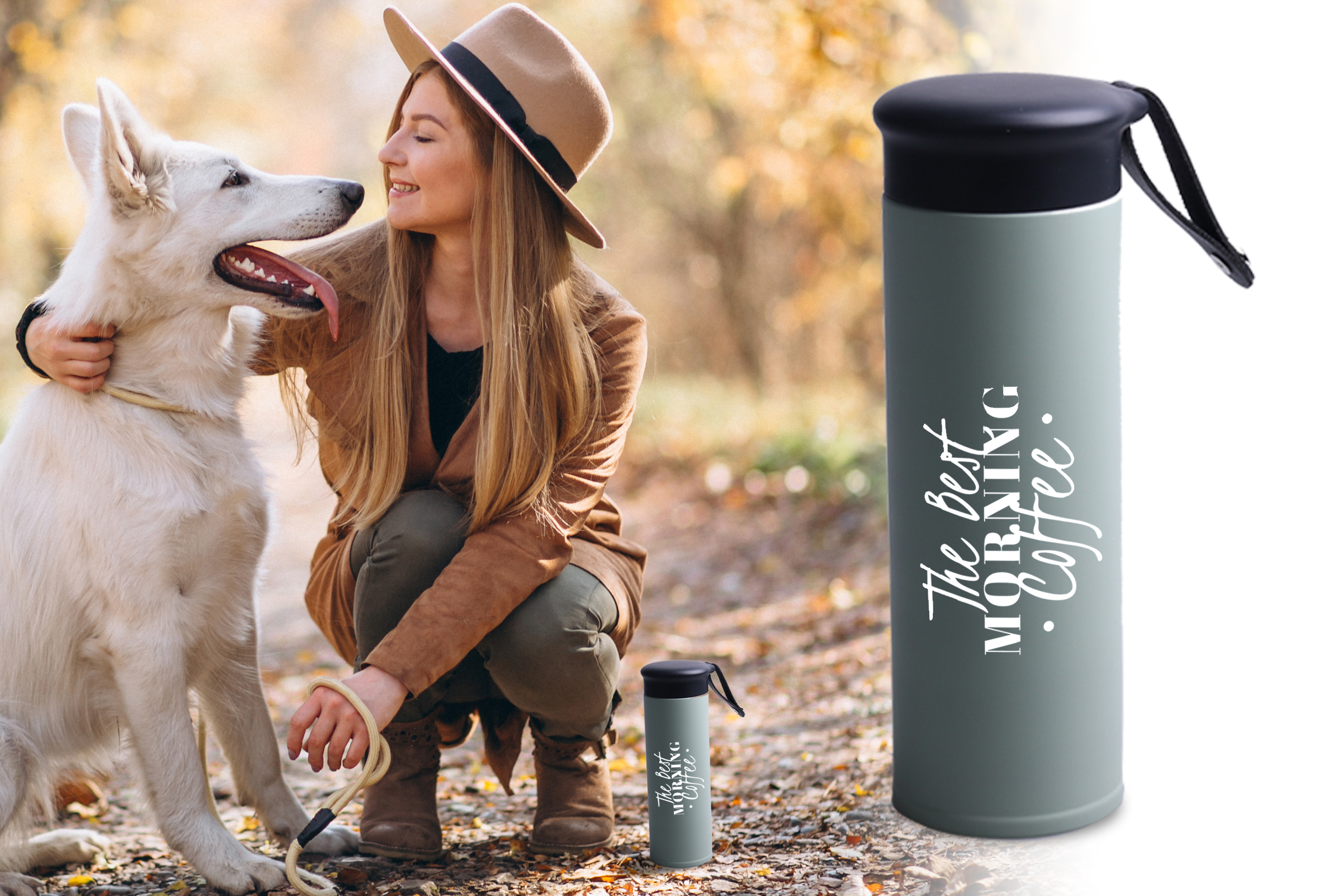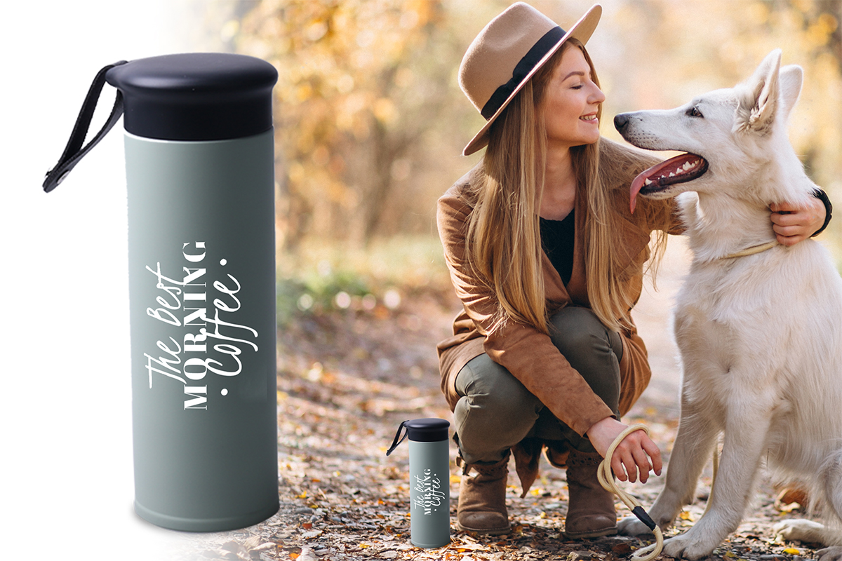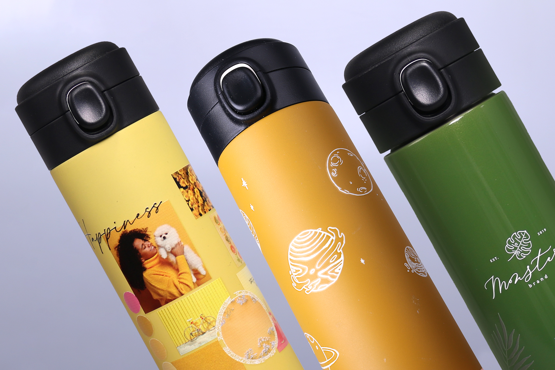 Ottenete una stampa di qualità fotografica e coprite l'intera superficie del thermos grazie alla nostra tecnologia di stampa a 360°.