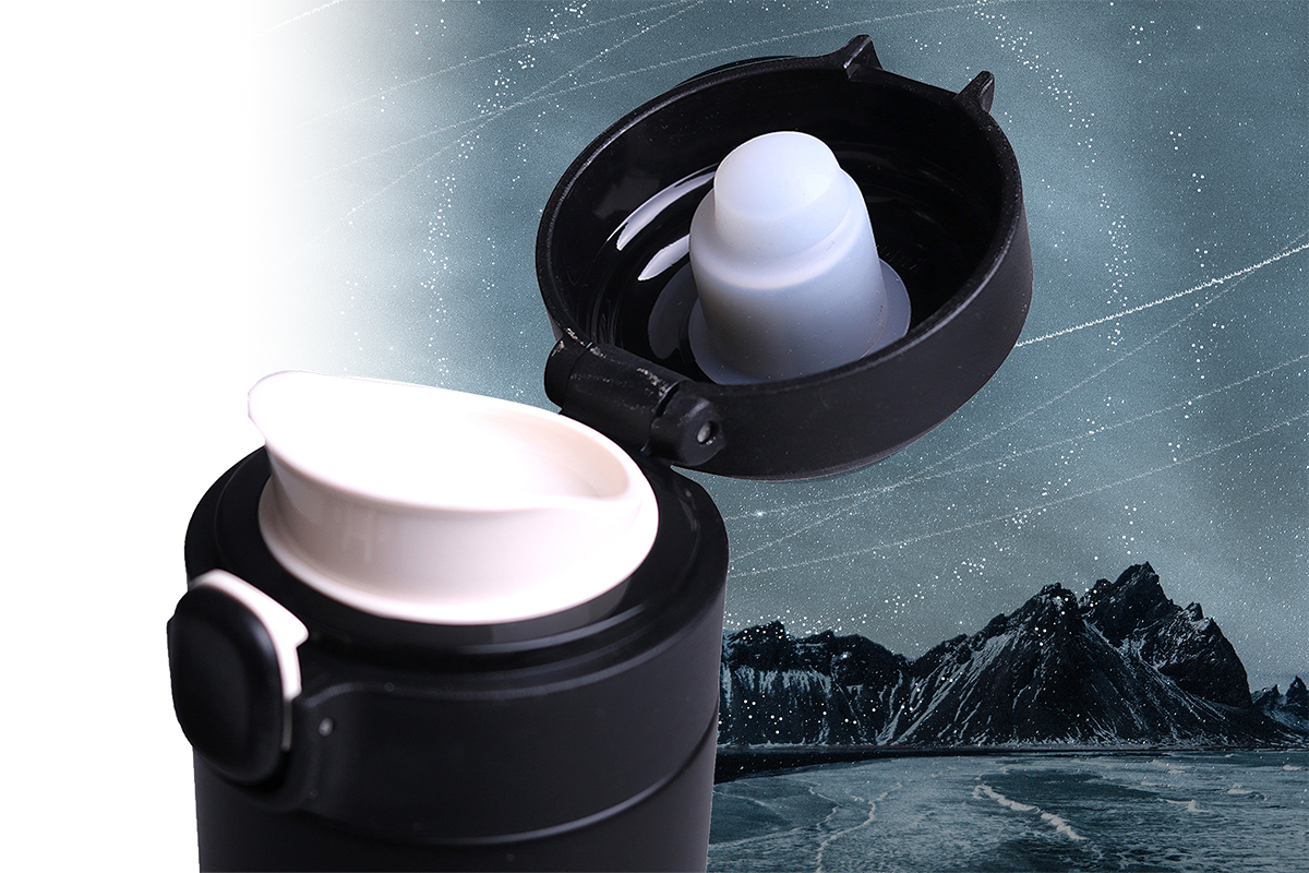 Le tazze termiche Galaxy sono estremamente strette. Sono dotati di guarnizioni in silicone installate sotto il coperchio e di un'ulteriore protezione "Leak Proof" per proteggere dall'apertura accidentale e dalla fuoriuscita di liquidi.