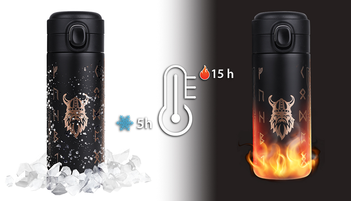I thermos Galaxy mantengono il calore fino a 15 ore e il freddo fino a 5 ore. La loro struttura a doppia parete in acciaio inossidabile, con isolamento sottovuoto, mantiene la temperatura più a lungo e protegge le mani dalle scottature.