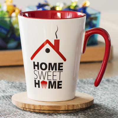 Una tazza dal manico innovativo con un unico punto di attacco. Il manico e l'interno sono disponibili in diverse varianti colore.