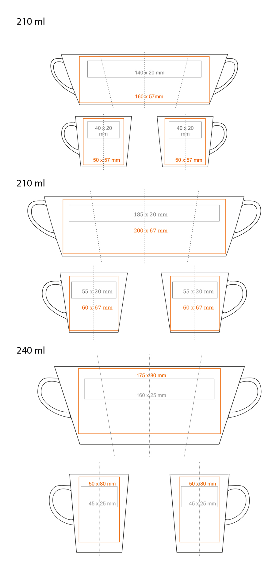 Una tazza in porcellana dalla forma conica. Il design permette di applicare stampe grandi e complesse.