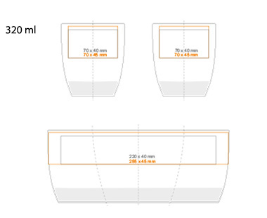 Tecnologie disponibili per decorazioni TOP: * (320 ml)