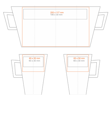 Una tazza conica alta con un originale manico quadrato e un'ampia area di stampa.