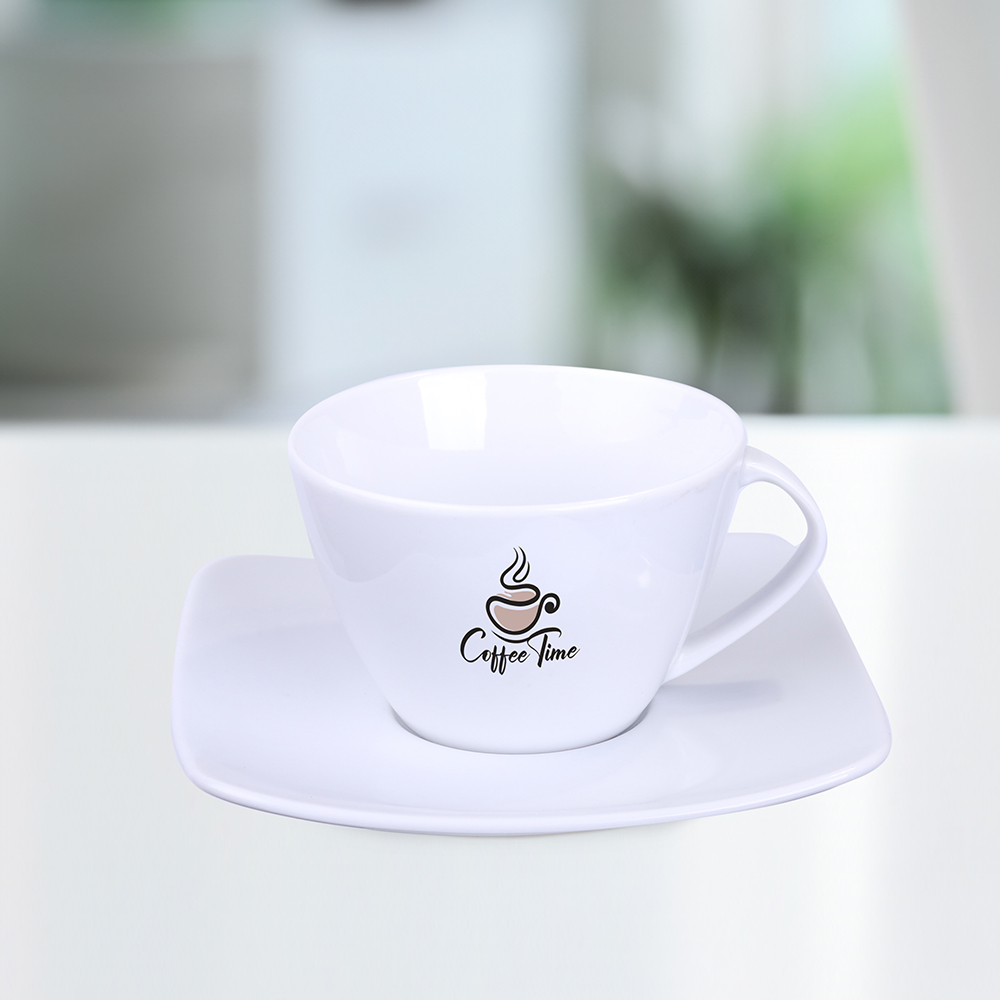 Eleganza con un pizzico di fantasia. Un set in porcellana con piattino ondulato, che conferisce un carattere unico. Combinato con la stampa di un brand, porta passione in ogni momento trascorso insieme. Prodotto in UE.
