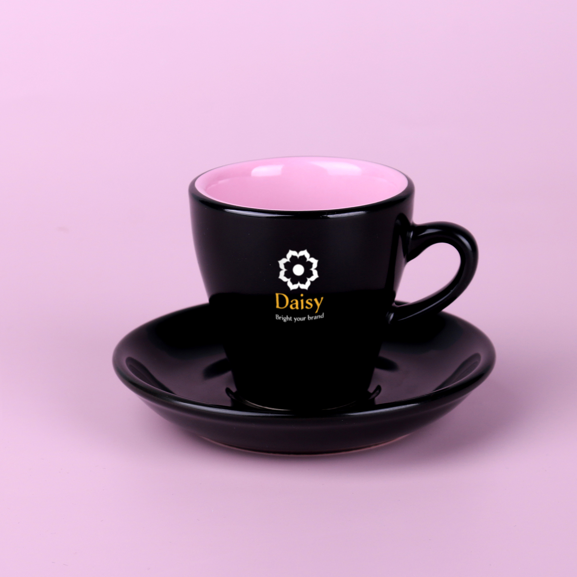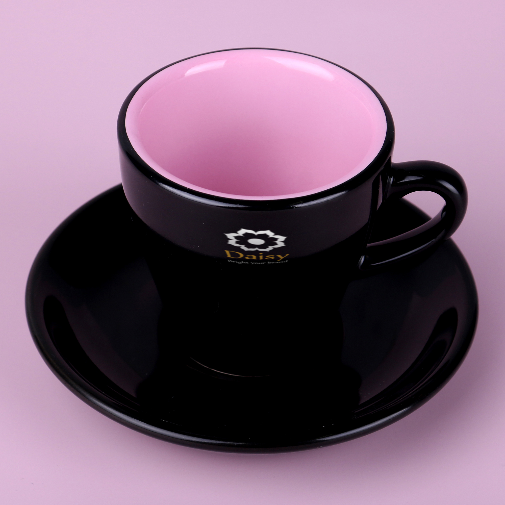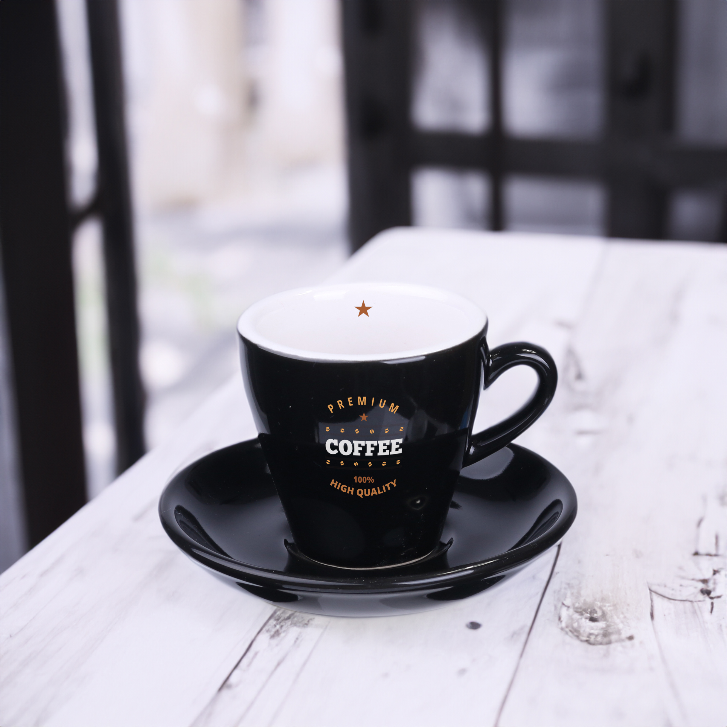 Fusione forte per un espresso perfetto. Un set per espresso alla moda e distintivo. Viene fornito con interni bianchi, distingue un brand e lo fa risaltare.