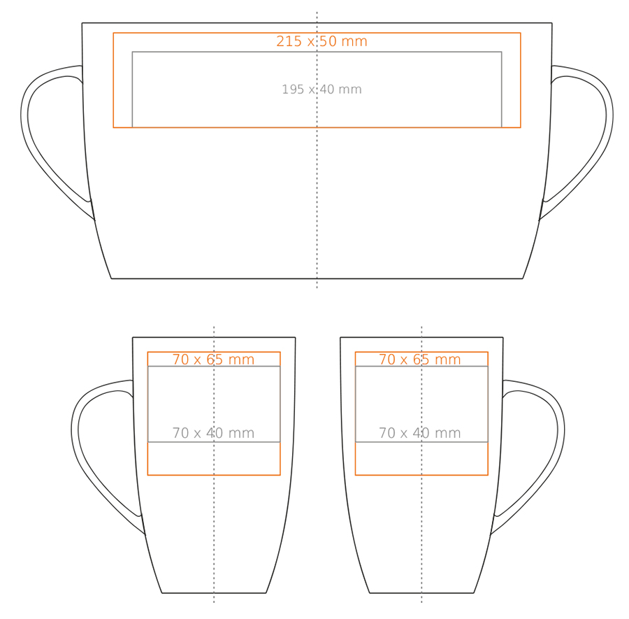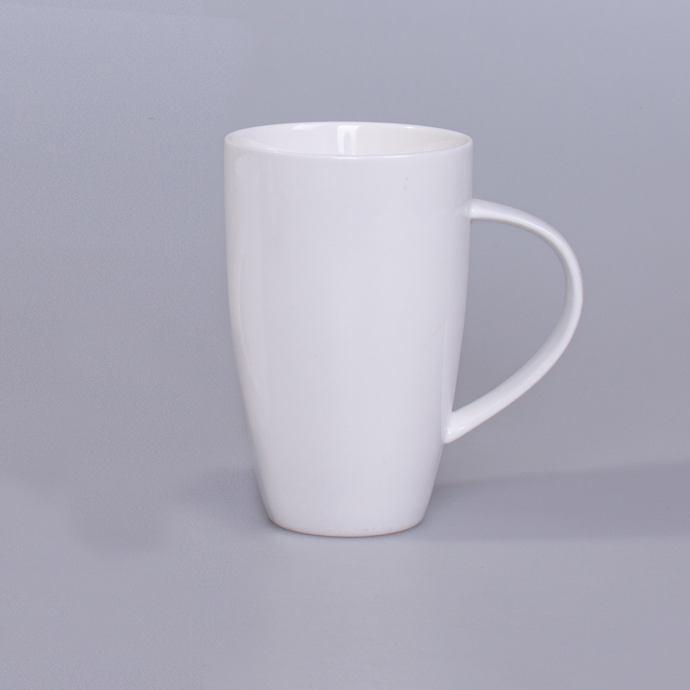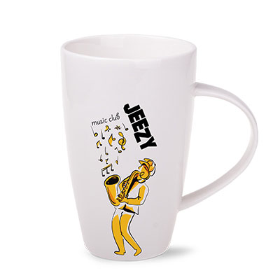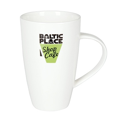 Una tazza alta e slanciata in porcellana. Dotata di un manico elegante. Si distingue per la grande capacità e le ampie possibilità di personalizzazione.