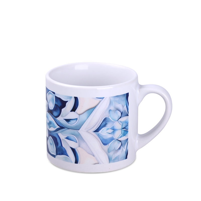 Una tazza dalla classica forma cilindrica. Il modello è adatto all'applicazione di stampe di alta qualità, utilizzando la tecnologia di stampa Stampa Art.