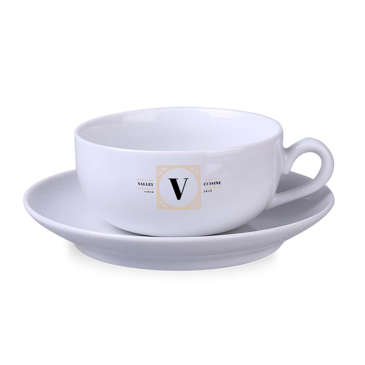 Tazza pubblicitaria obliqua prodotta dalla fabbrica di porcellana polacca Karolina. Il taglio è disponibile in tre capacità.