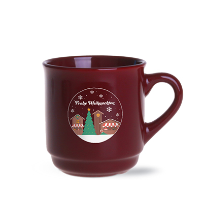 Una tazza creata pensando ai mercatini di Natale. Ha un manico dalla forma classica e le pareti dritte, che permettono l'impilaggio.