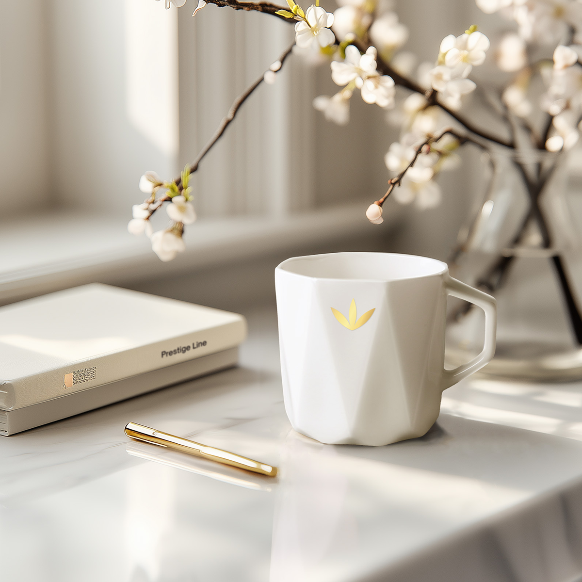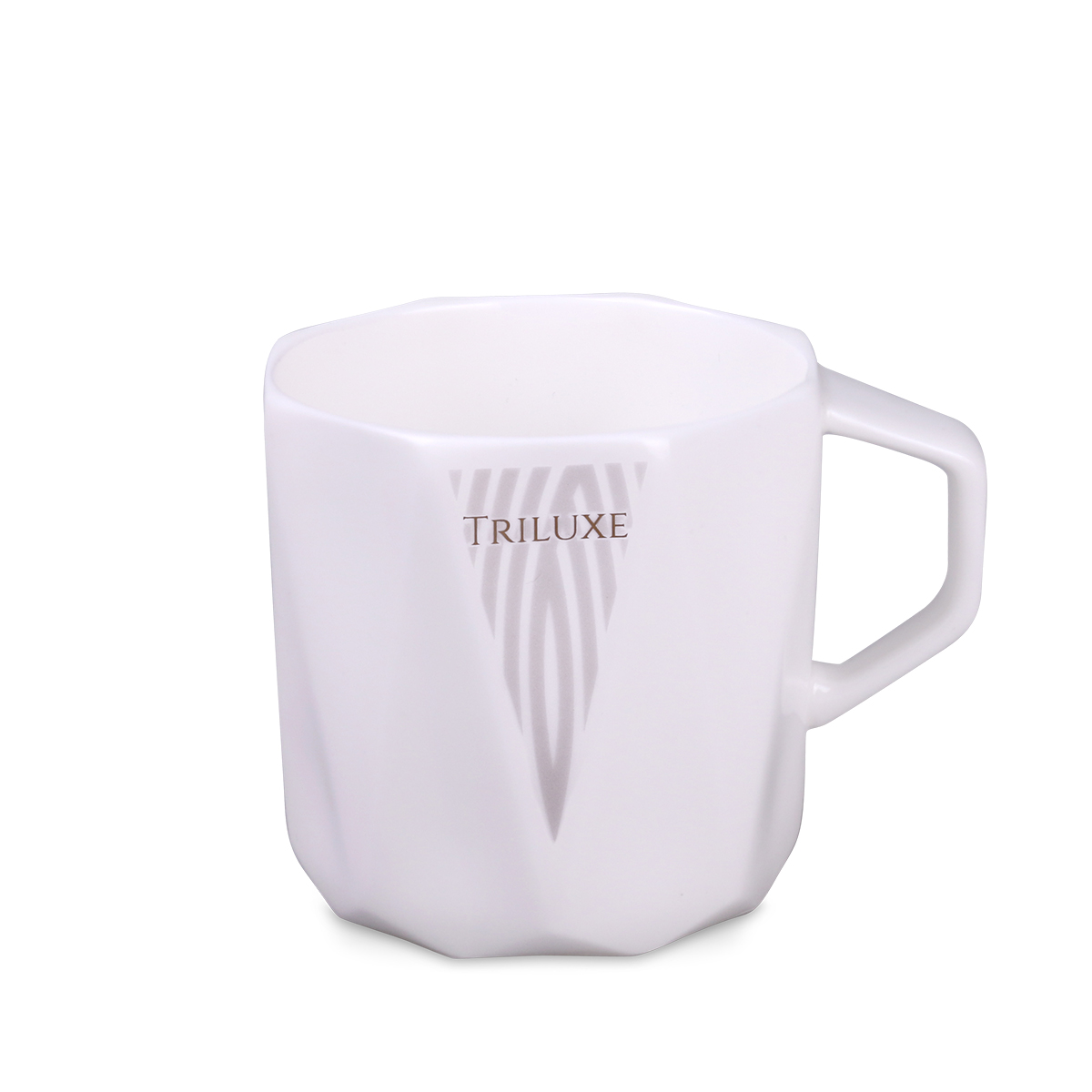 Una tazza prestigiosa realizzata in porcellana Fine Bone China di altissima qualità. Si distingue per la sua forma geometrica unica che ricorda la struttura di un diamante. Rappresentante della linea Prestige Line.