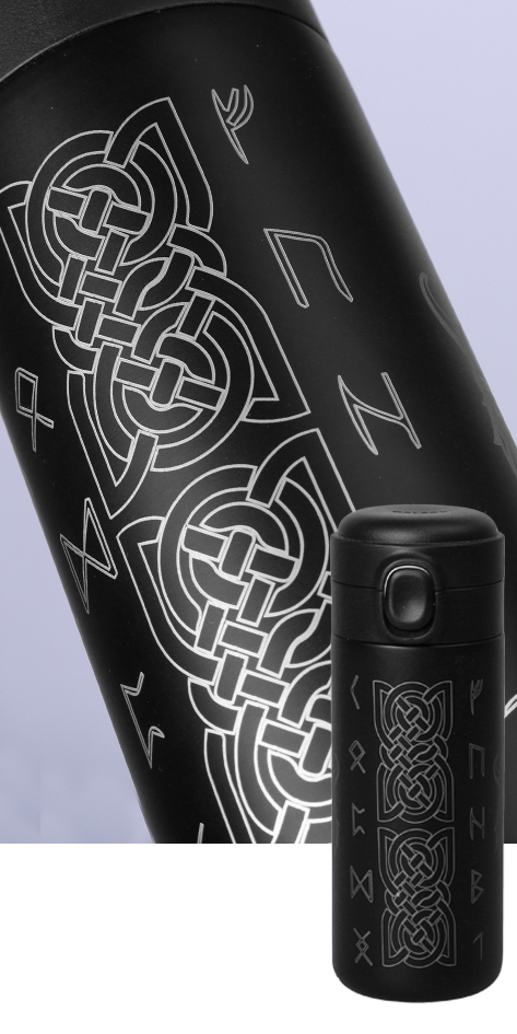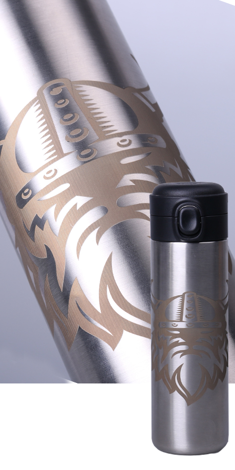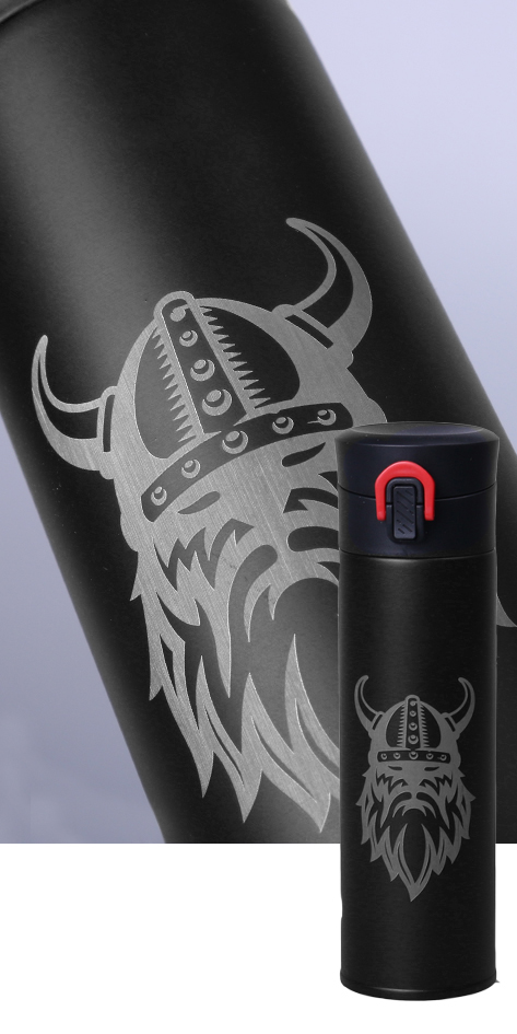 L'incisione laser viene effettuata sui corpi metallici di tazze e bottiglie termiche Galaxy, su prodotti in vetro e su tazze in ceramica con smalto colorato.